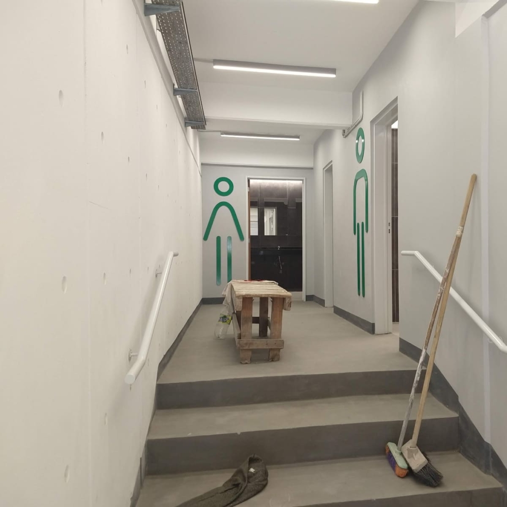 En antiguos sanitarios completamente abandonados, se rediseño por completo los mismos. Rehaciendo todas sus instalaciones, mejorando su diseño y funcionalidad, generando sanitarios de damas, caballeros y discapacitados de primer nivel para las oficinas públicas.