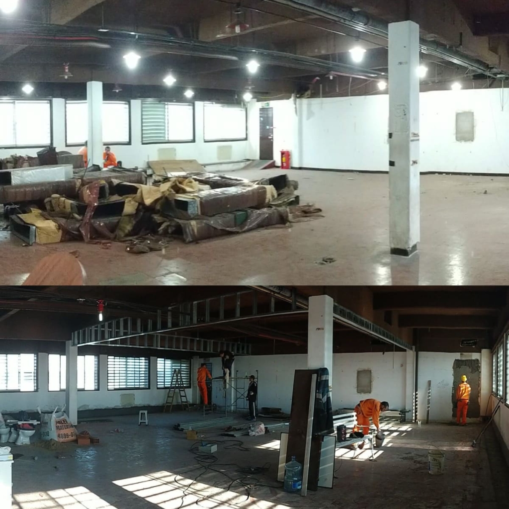 Se desarrollo integralmente el proyecto, confecciono documentación licitatoria, se realizó dirección de obra total y ejecutaron mas de 6 contratos diferentes transformando un espacio abandonado en oficinas modernas con todas sus instalaciones, espacios y mobiliario nuevo. Generando un espacio confortable, funcional y de diseño moderno.