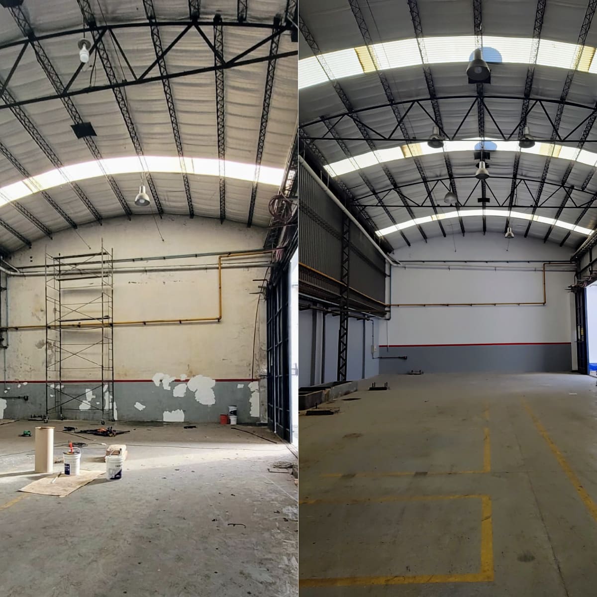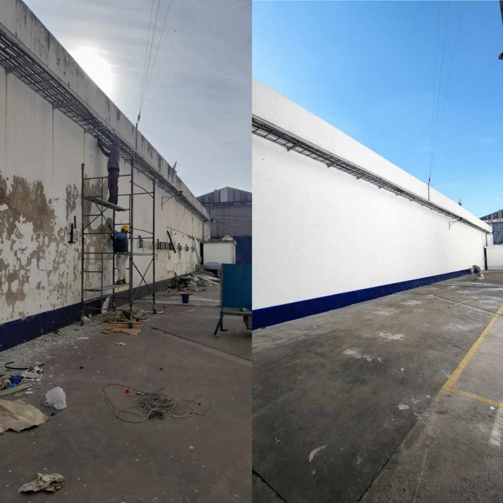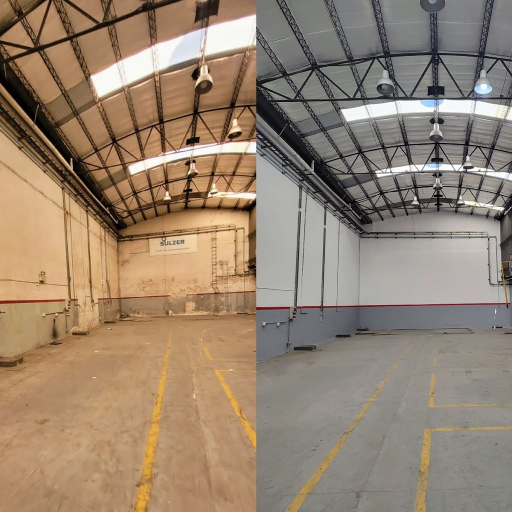 Ejecución llave en mano de puesta en valor de deposito industrial para nuevo alquiler. Se repararon todos los revoques deteriorados y se procedió a pintar integralmente los diferentes espacios de uso.